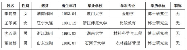 通过公开发布招聘计划、遴选简历、面试、政审、人才工作领导小组会议、校长办公会议等程序,经体检合格后确定下列人员为我单位拟聘用人员,并公示如下: